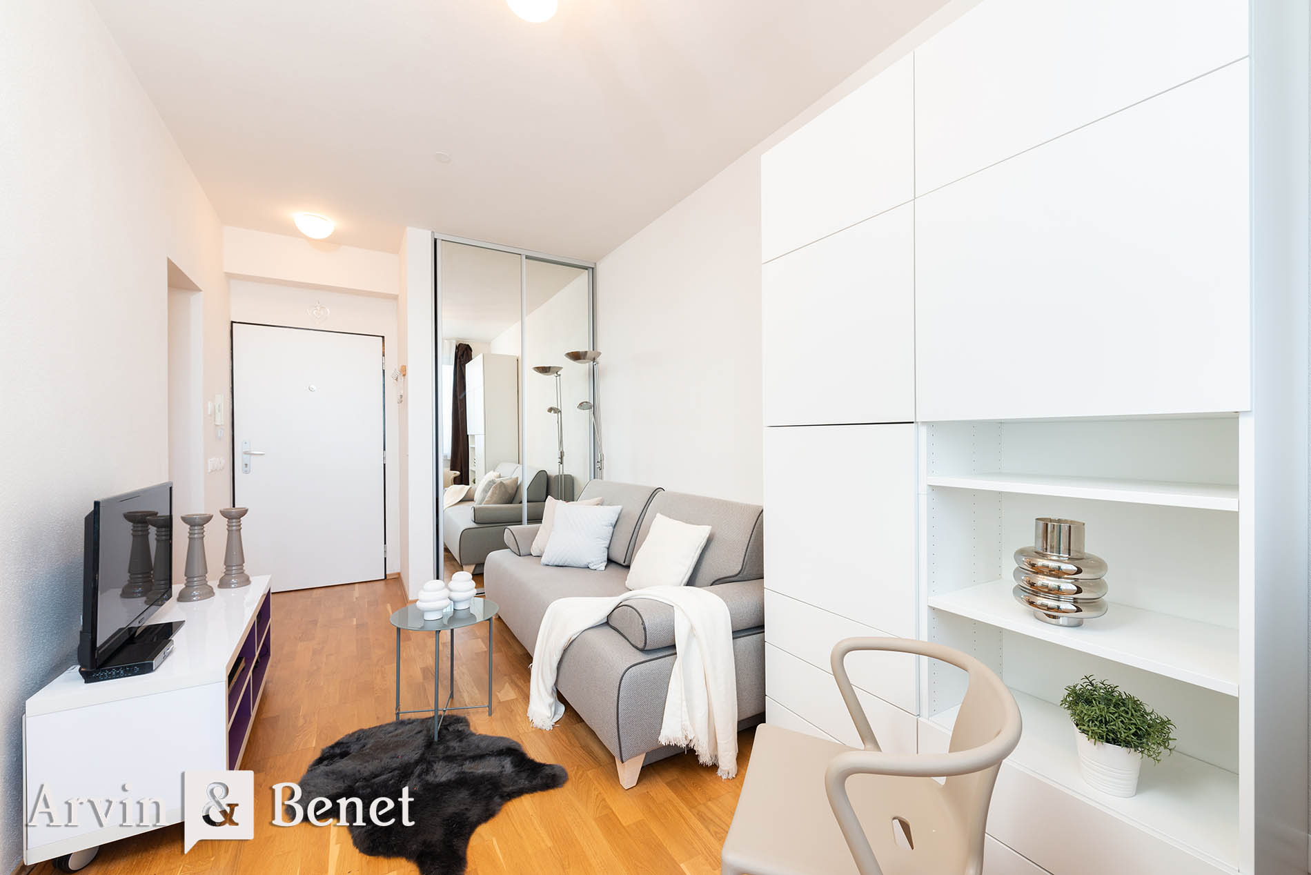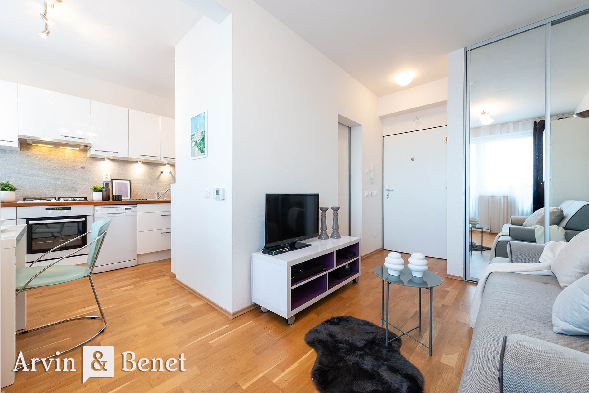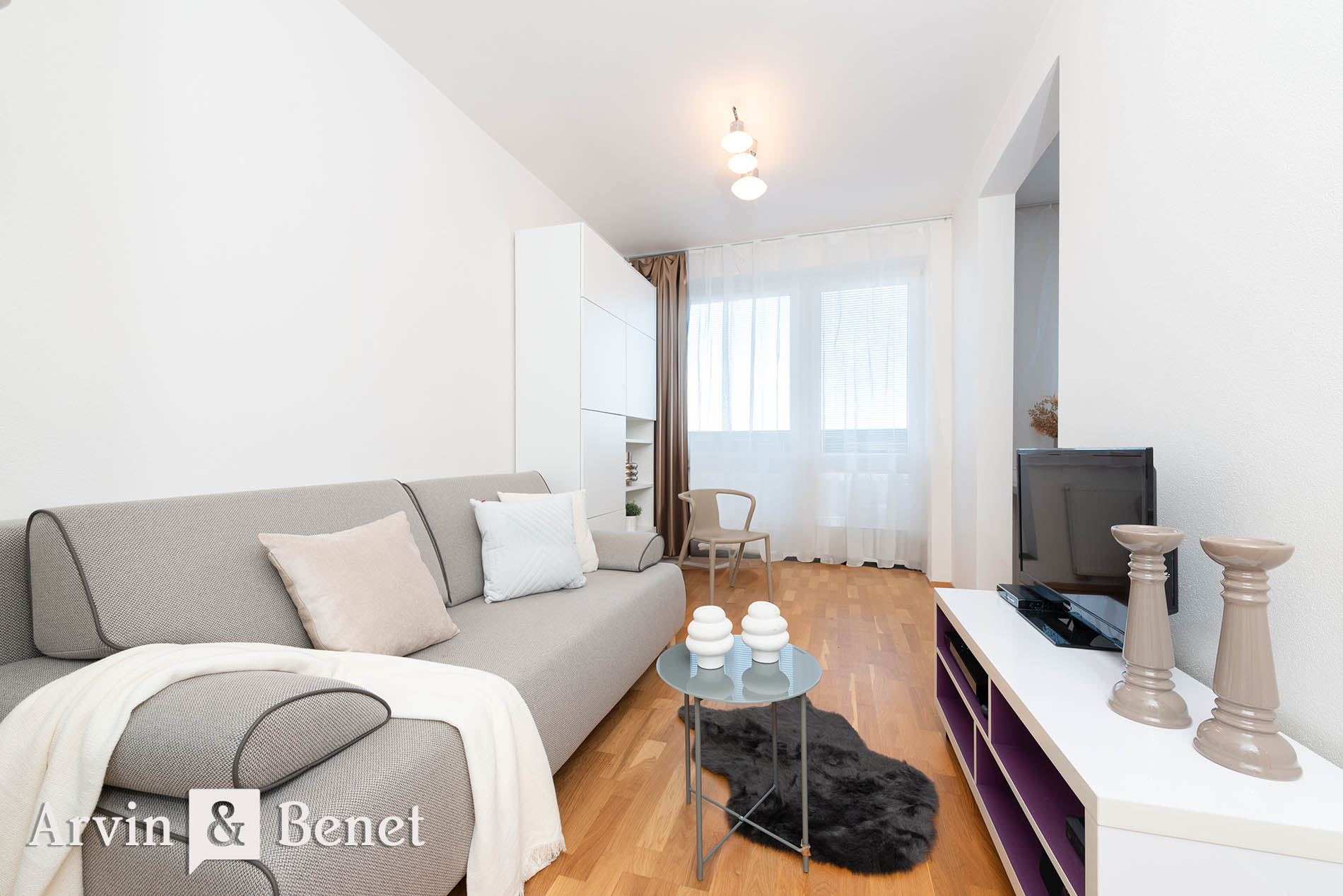 Arvin & Benet ponúka na prenájom moderný, veľmi vkusne a prakticky zariadený 1i byt v bytovke v kľudnej lokalite.