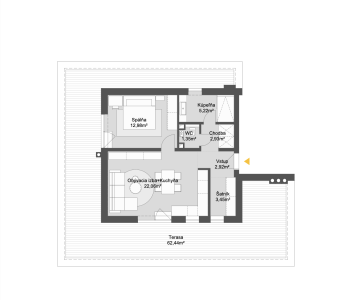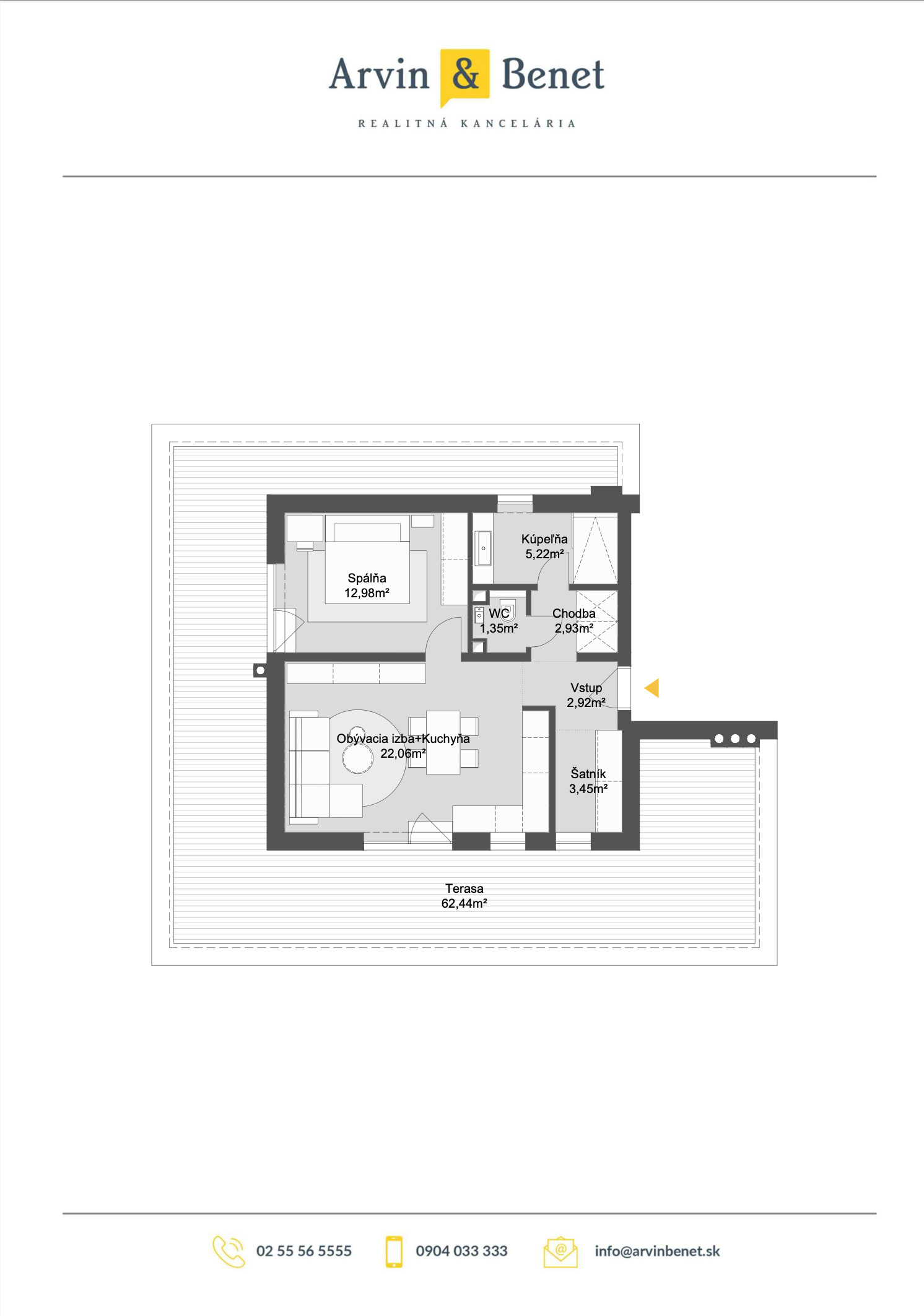Výmera: 115,80 m² (interiér 50,33 m² + terasa 62,60 m² + pivnica 2,87 m²)