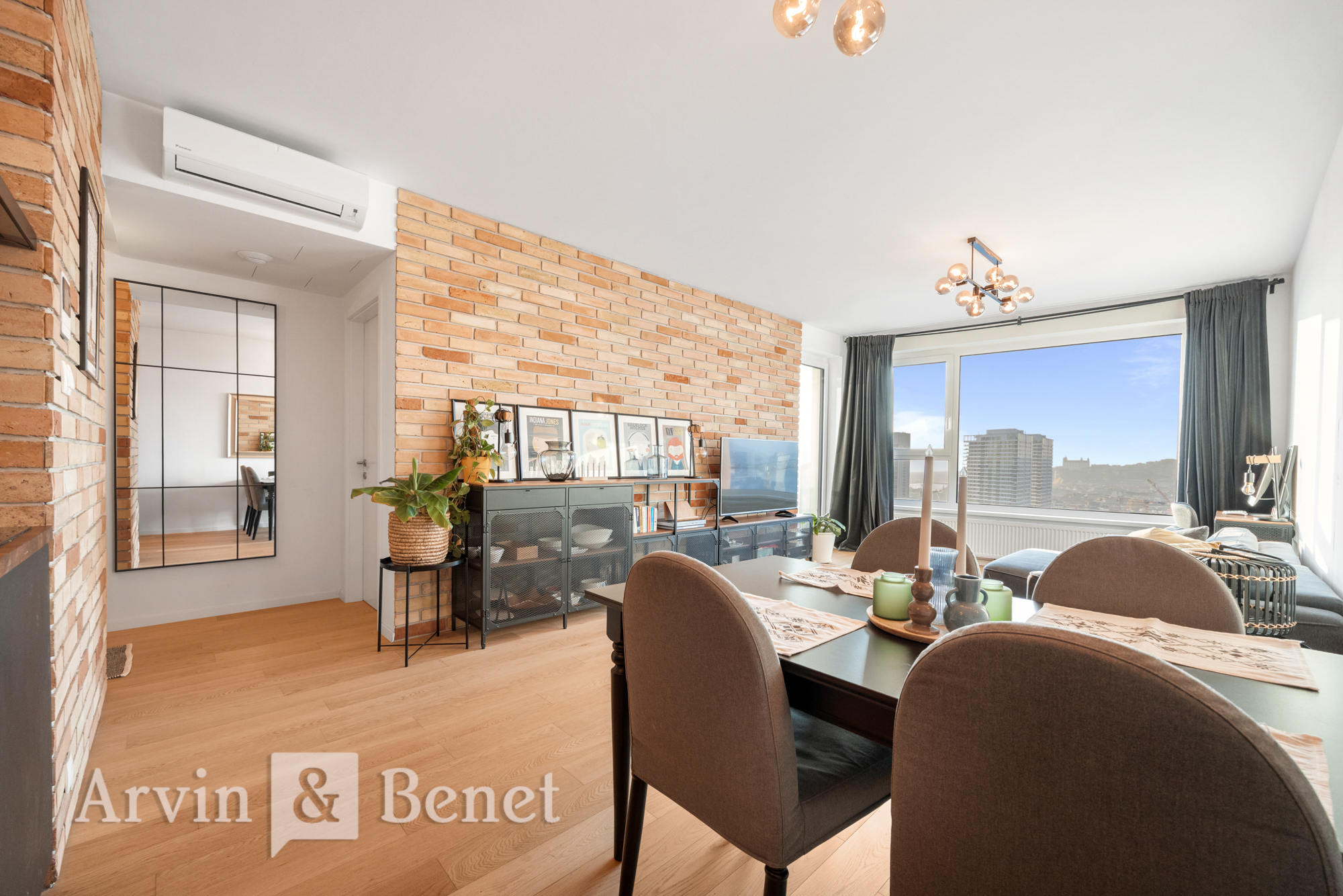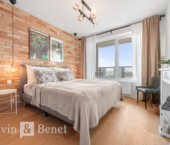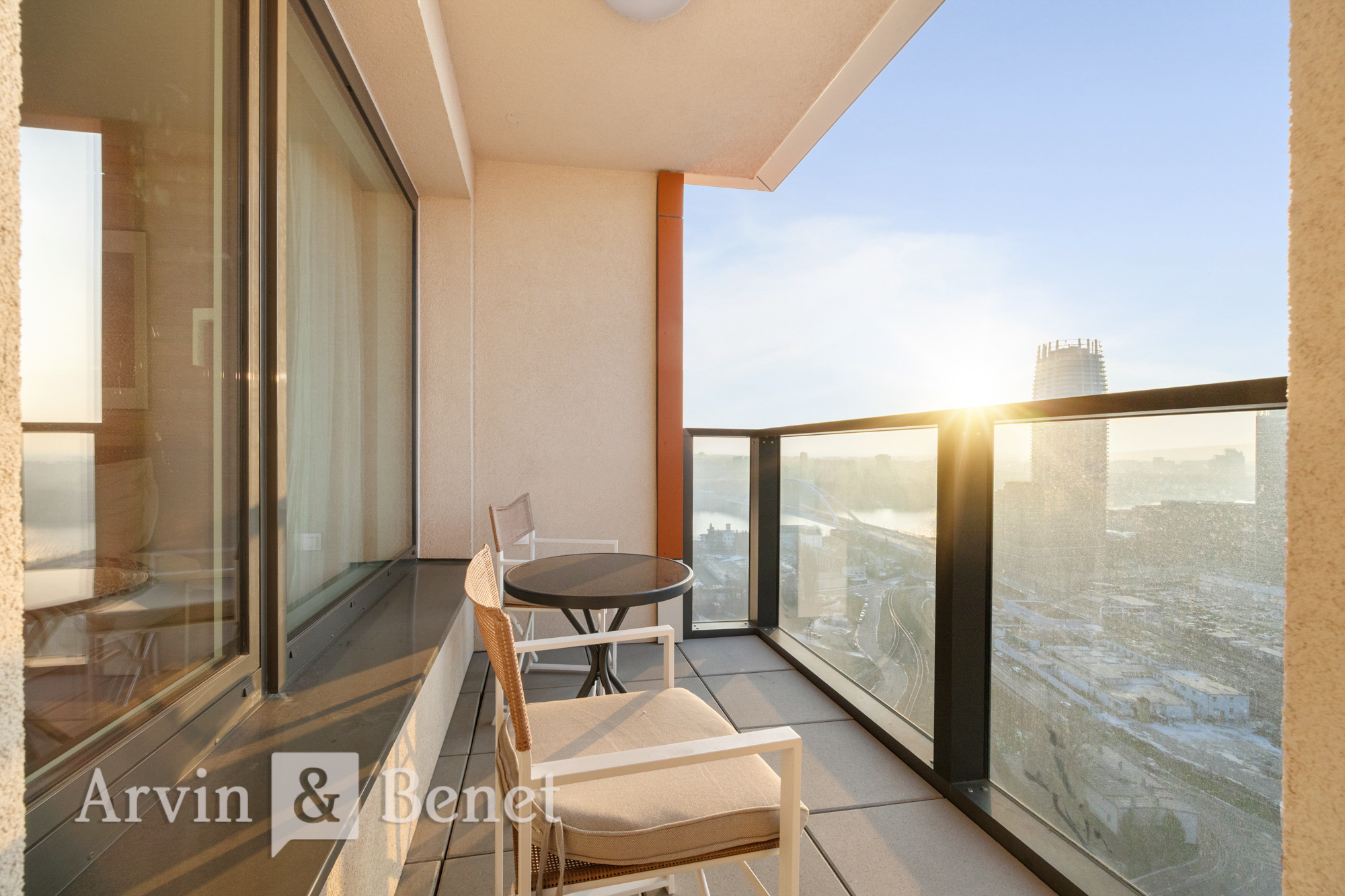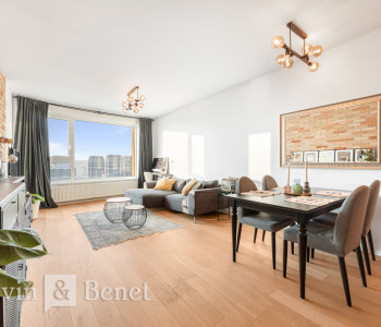 Arvin & Benet ponúka na prenájom nový, kompletne zariadený a klimatizovaný 2i byt v projekte Klingerka, situovaný na 27. poschodí s ultimátnym výhľadom na celú panorámu Bratislavy vrátane Bratislavského hradu. Byt ponúka výnimočné výhľady a nádherné západy slnka, ktoré dotvárajú jedinečnú atmosféru bývania. Byt je nový, vkusne a kvalitne zariadený a k dispozícii ihneď.