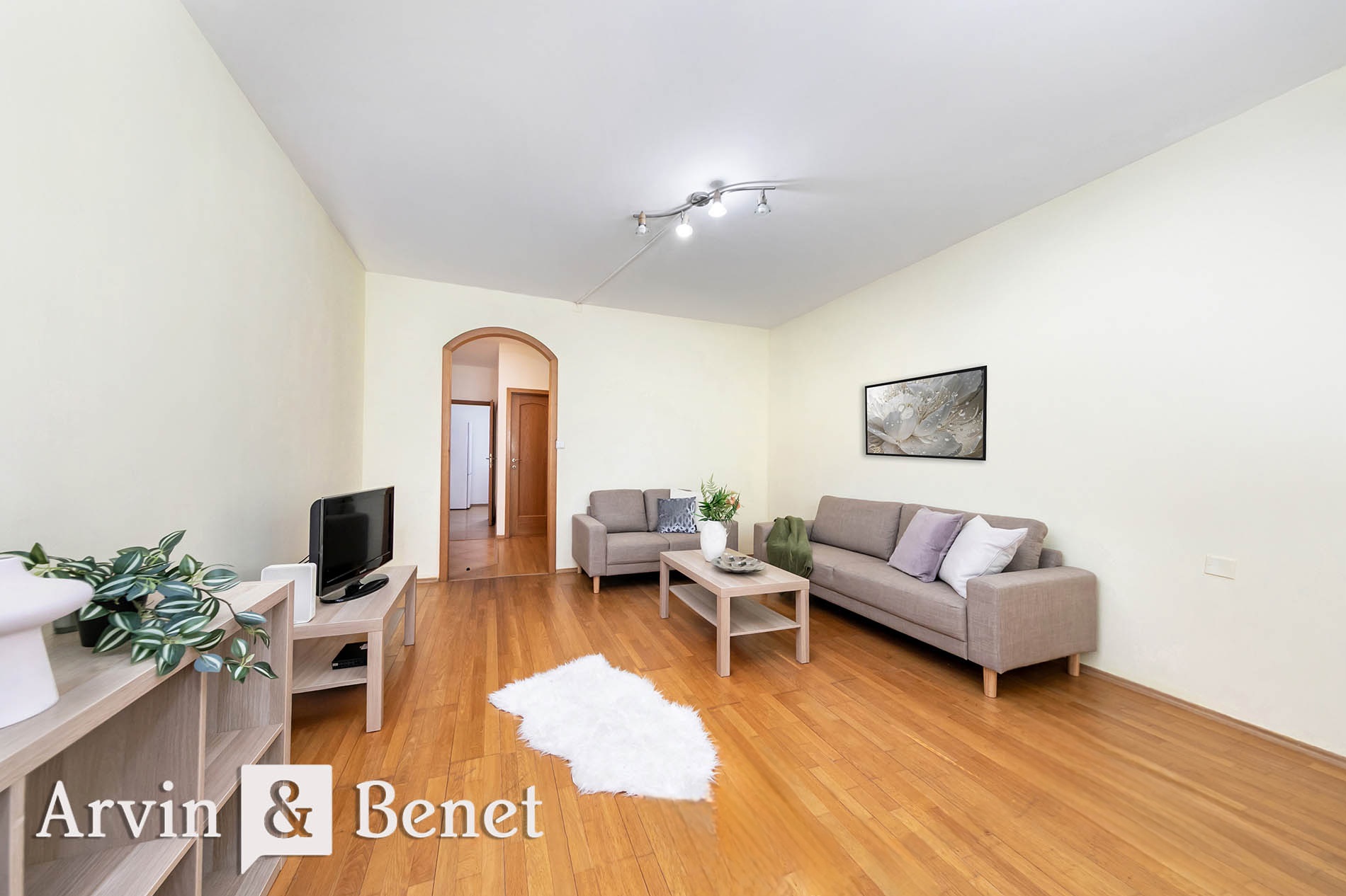 Dispozícia bytu je navrhnutá s dôrazom na funkčnosť a estetiku. Obývacia izba s pohodlnou sedačkou vytvára ideálne miesto na oddych po náročnom dni. Spálňa ponúka dostatok súkromia a úložného priestoru vo vstavaných skriniach na mieru.