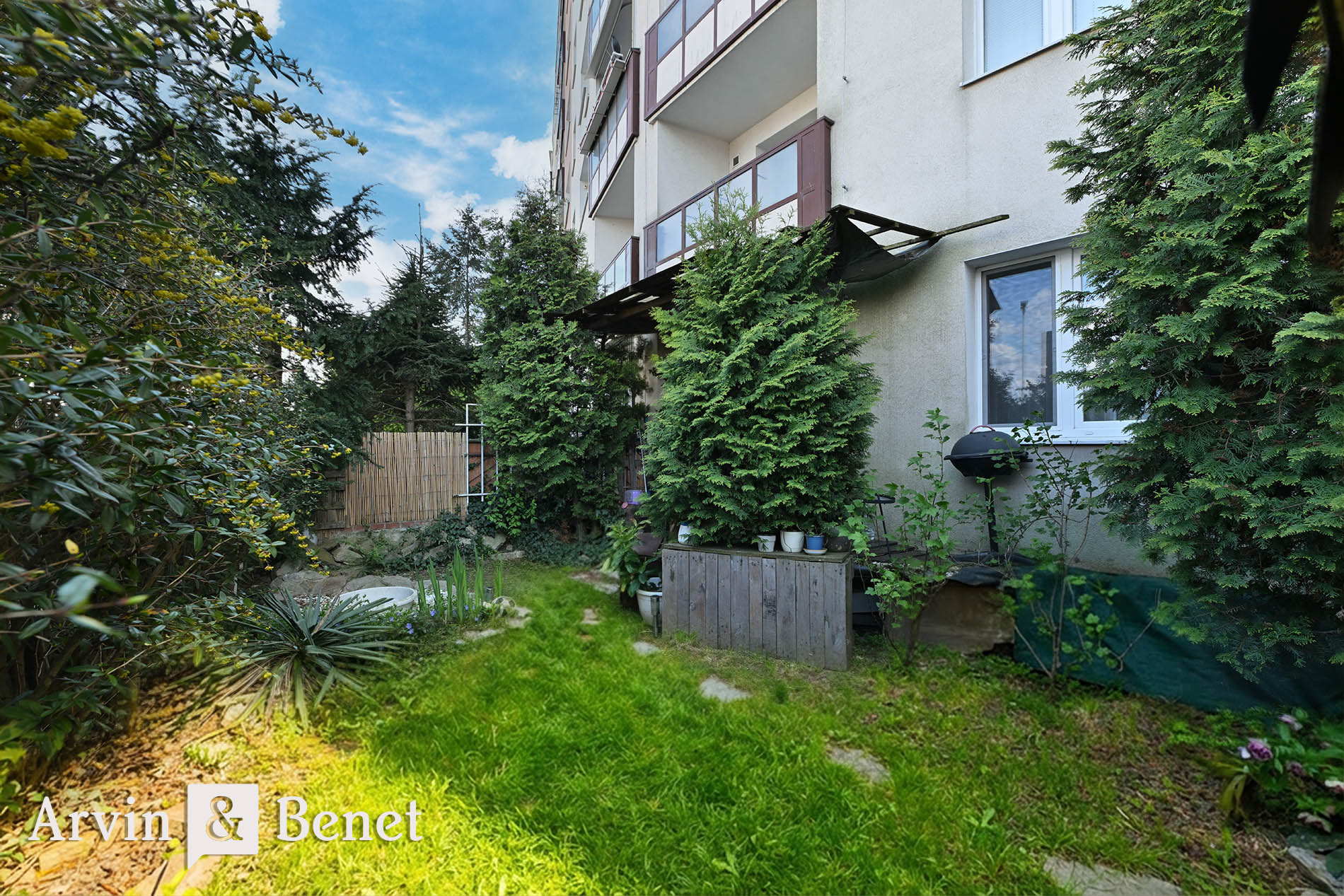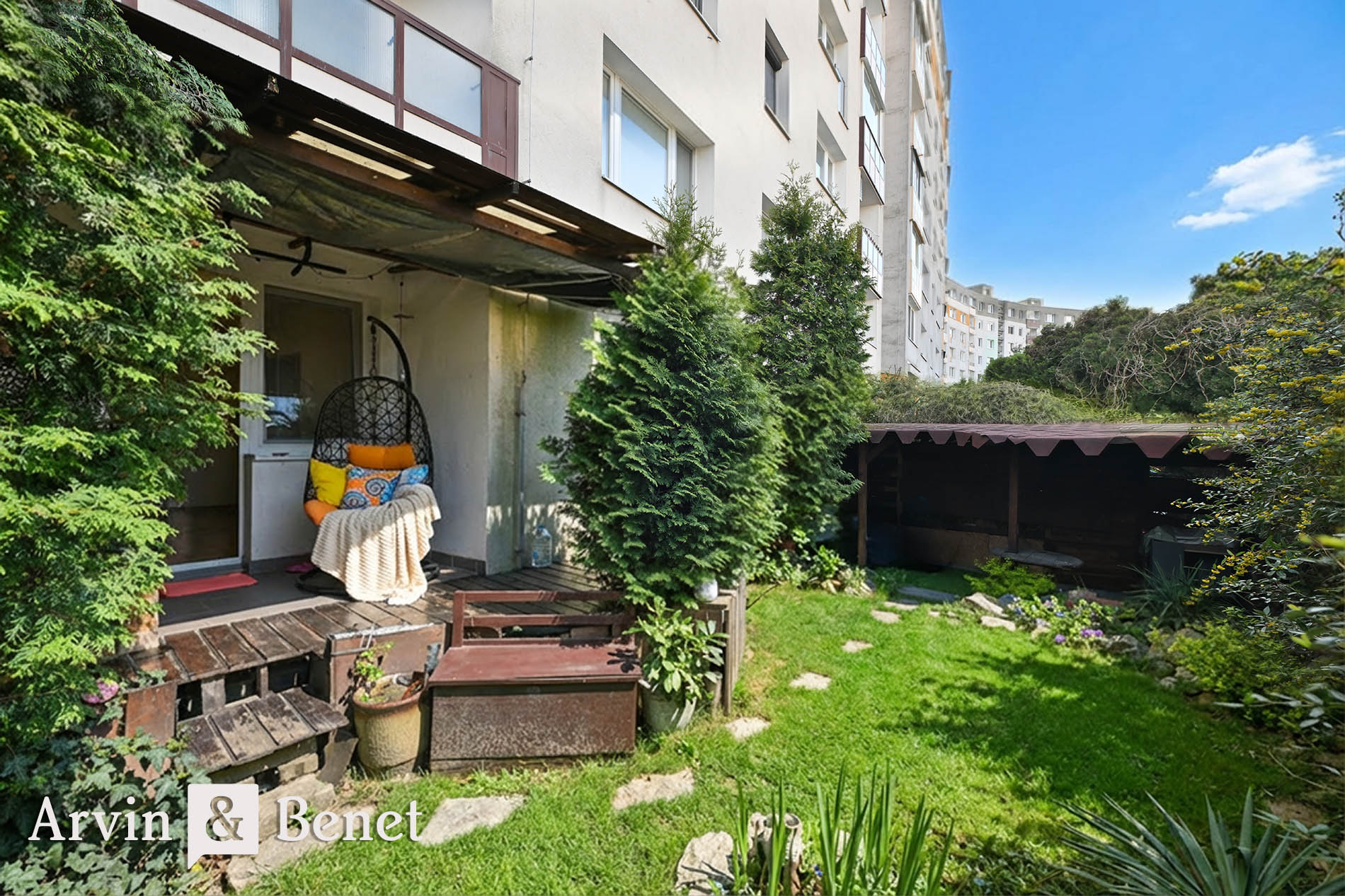 Arvin & Benet ponúka na predaj 2i byt s veľkorysou výmerou na prízemí bytového domu na Dlhých Dieloch vzdialený len 5 min pešo od električkovej zastávky. K bytu prislúcha predzáhradka o výmere 87 m² s drevenou terasou a altánkom.