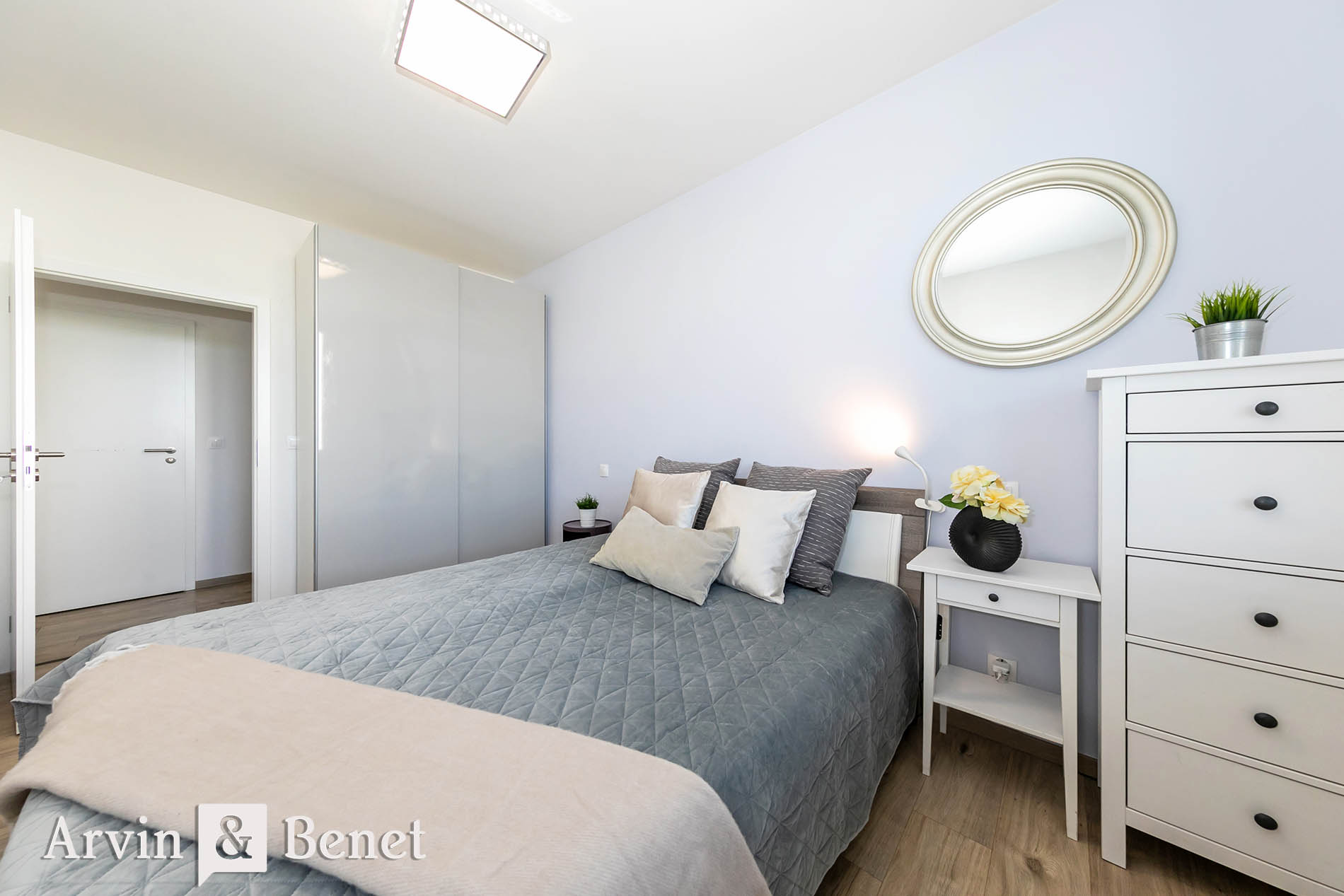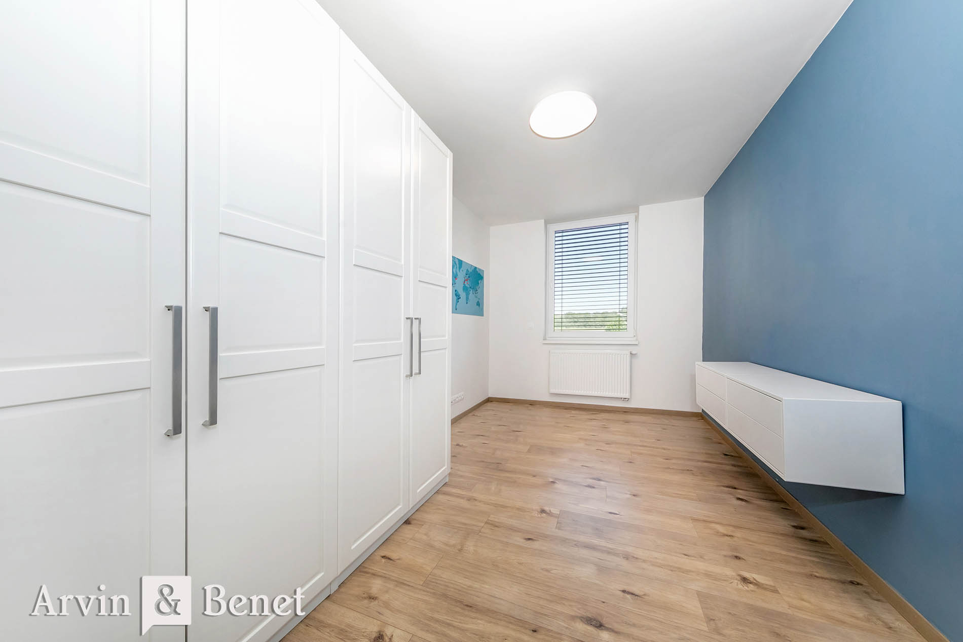 Vľavo sa nachádza plne zariadená spálňa a ďalšia spálňa, ktorú možno využiť ako pracovňu, detskú, či hosťovskú izbu. Mnohí ocenia, že obe izby disponujú množstvom odkladacieho priestoru vo vstavených skriniach a tiež vonkajšími žalúziami, ktoré Vám zaručia nerušený spánok.