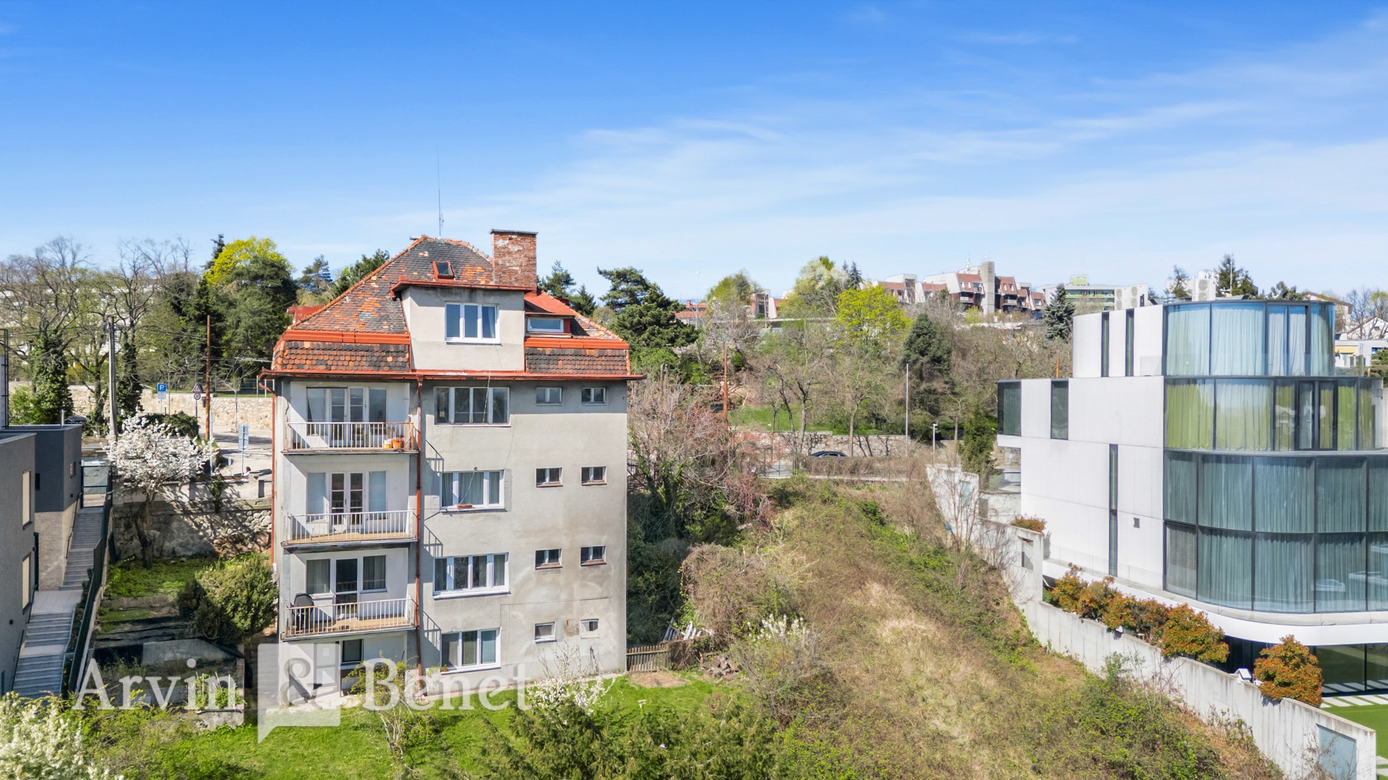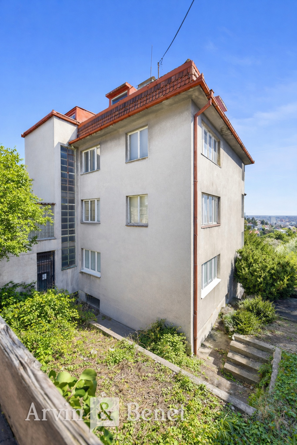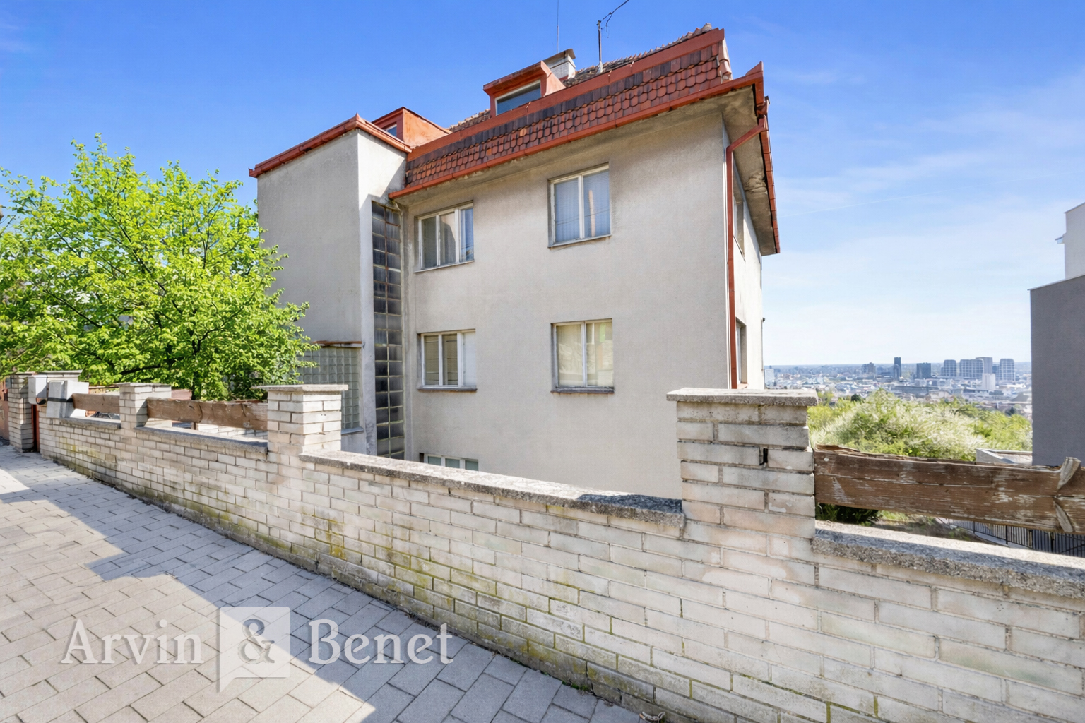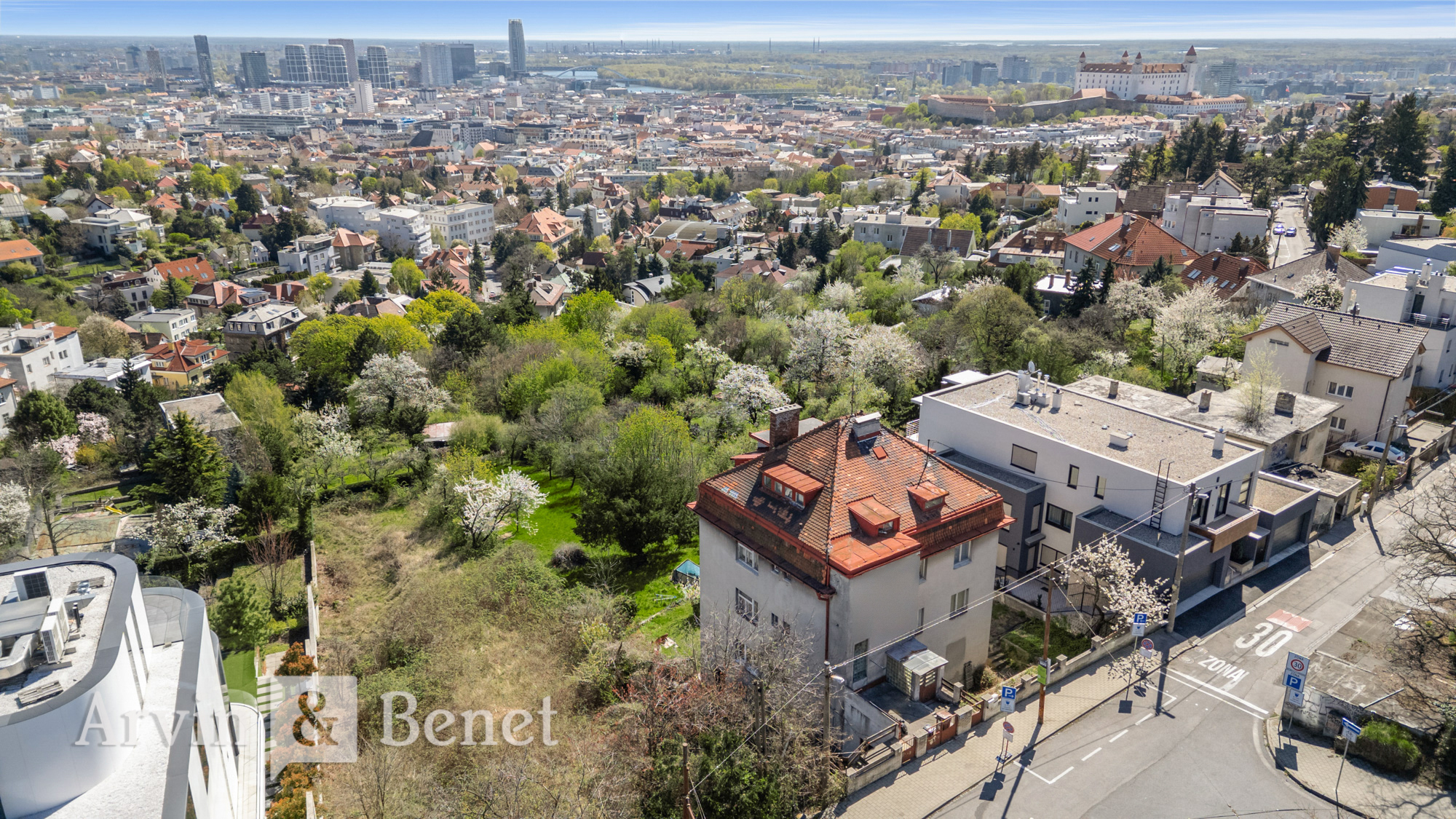 Arvin & Benet ponúka na predaj posledný voľný stavebný pozemok na Mudroňovej ulici na hradnom kopci. Ide o výnimočné miesto, odkiaľ máte z vlastnej záhrady panoramatický výhľad na celé mesto. Na pozemku sa nachádza existujúci rodinný dom s platným stavebným povolením na rekonštrukciu. Podľa neho je schválený stavebný objem až 943,6 m², čo dáva budúcemu majiteľovi mimoriadnu flexibilitu pri realizácii. Nehnuteľnosť tak ponúka dve cesty, citlivú rekonštrukciu domu podľa vlastných predstáv alebo developerský zámer s maximálnym využitím potenciálu tejto prestížnej adresy.