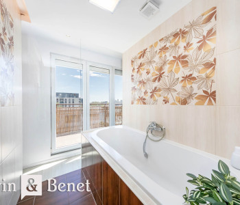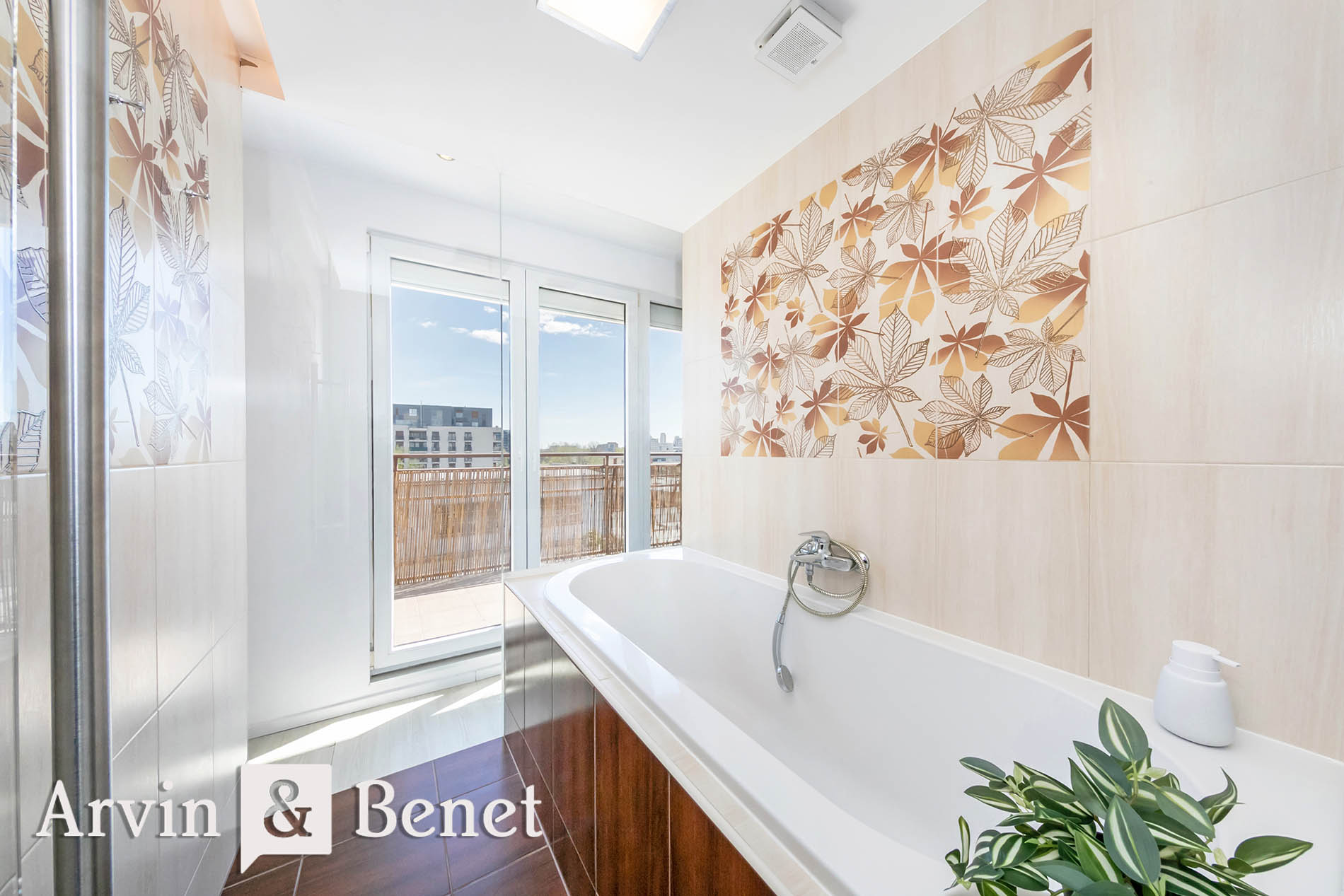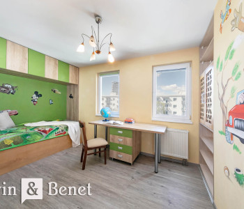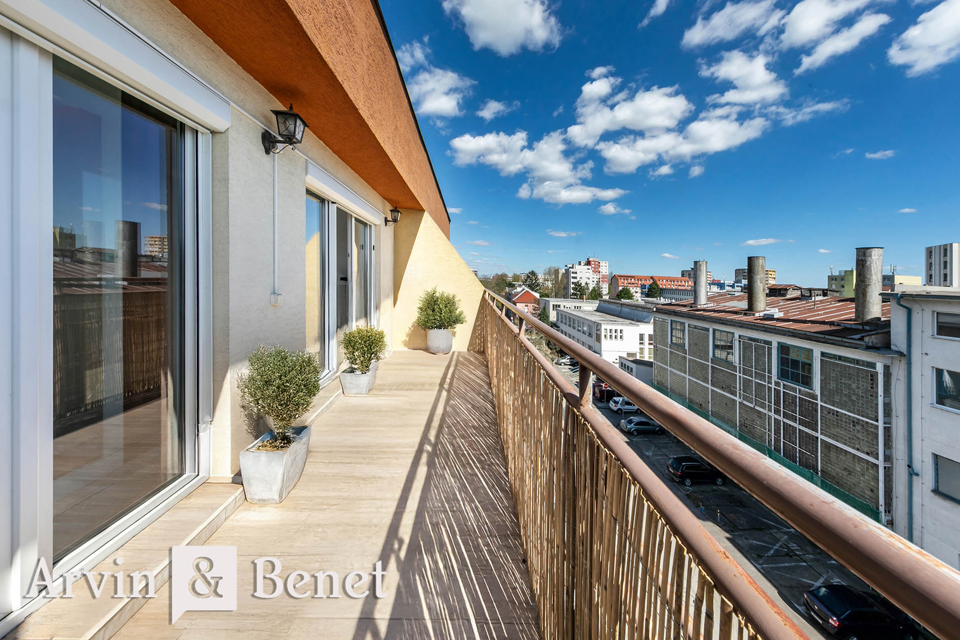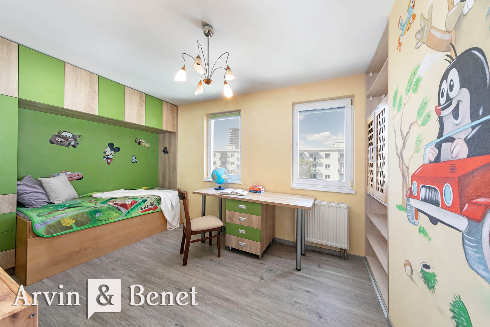 Arvin & Benet ponúka na predaj výnimočný 3i byt na Teslovej ulici v Ružinove, situovaný na najvyššom podlaží s rozľahlou slnečnou terasou a krbom v obývačke. Byt vznikol dômyselnou úpravou pôvodnej 4-izbovej dispozície, čo odzrkadľuje nadštandardné riešenie priestoru a to vrátane kompletného interiéru na mieru, ktorý ostáva súčasťou predaja.